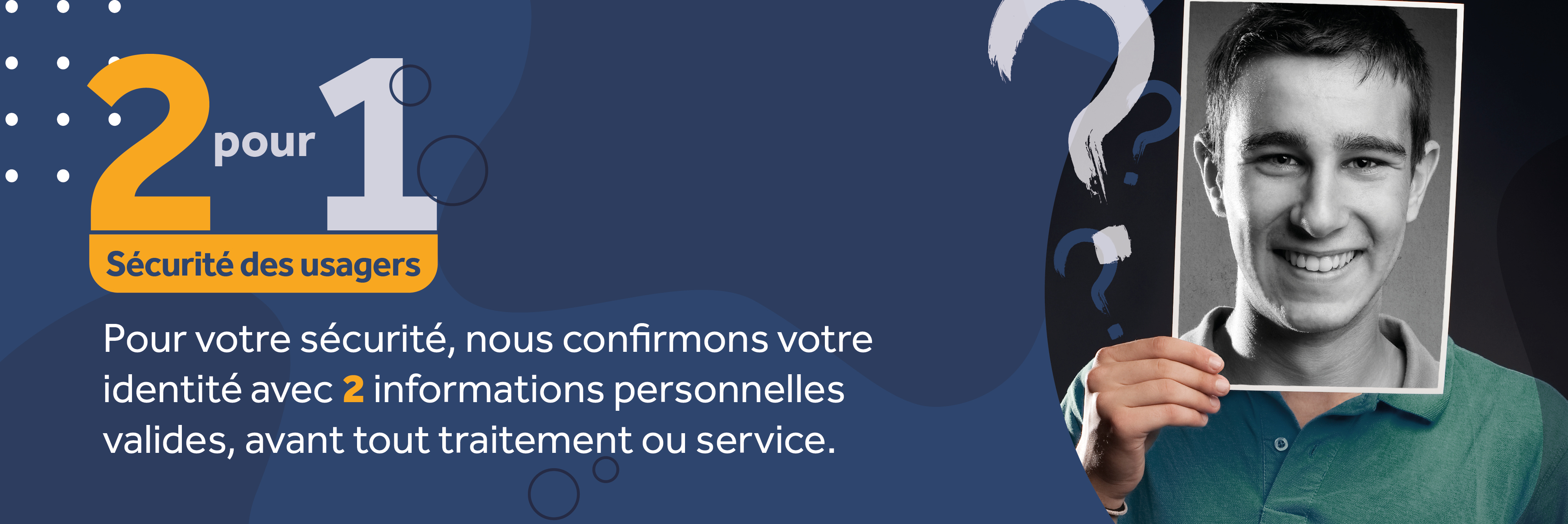 Avant chaque soin ou service, deux informations différentes sont utilisées pour confirmer votre identité. Ces identifiants peuvent être :