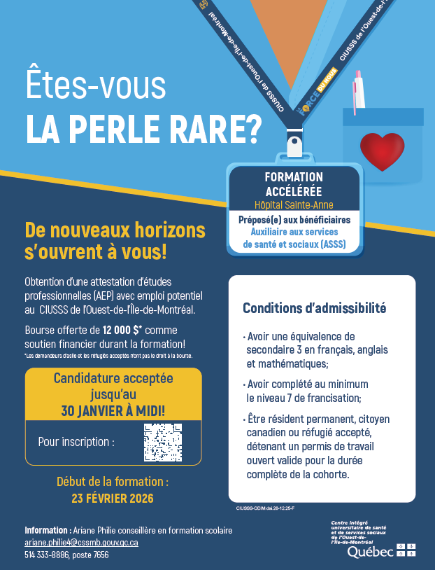 Formez-vous à l’Académie PAB, une école créée au CIUSSS en collaboration avec le CSS Marguerite-Bourgeoys, pour répondre concrètement à la pénurie de PAB.
